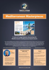 A series of 2-page features showcasing the Mediterranean’s leading luxury beach resorts Eye-catching Mediterranean seascapes or inviting pools dominate the hero images used to promote some of the most iconic beach resorts across the Mediterranean. In most cases these resorts actually upstage their geographic location making them the principal reason for travel! A montage of key resort images draws the reader across the two page spread whilst an engaging overview of the property is supported by an inset panel that can be used in a variety of ways as we suggest below: Upgrade on arrival, subject to availability Daily American breakfast for two guests per bedroom, served in the restaurant $100USD equivalent Food & Beverage credit utilised during stay (not combinable, not valid on room rate, no cash value if not redeemed in full) For stays of two nights or more, guests will also receive: Complimentary round-trip airport/train private transfers in an E-Class Mercedes Early Check-In / Late Check-Out, subject toavailability ComplimentaryWi-Fi 9 rooms categories, 11 suite types and 4 residences. Noon, but flexible, subject to availability. Earliest check-in, 3pm. Four restaurants range from swish to seasalty: Helios - French-Mediterranean fine dining Basiliko - Asian Fusion Pelagos - Cypriot mezze Award-winning Thalassa Spa Two outdoor freshwater swimming pools 50 minutes from airport Value-added benefits/Special Offer Staff profile/first hand experience Hotel Information (Default) “I travelled to Paris in April 2022 and was extremely privileged to stay at La Reserve Paris Hotel & Spa. If you would like to find out more why not give me a call and I would be delighted to tell you all about the hotel and my Paris adventures” Call Gillian now on 01923 567245 Ask Gillian Benefits when booking with ACME Travel At a Glance Anassa Mediterranean Masterpieces